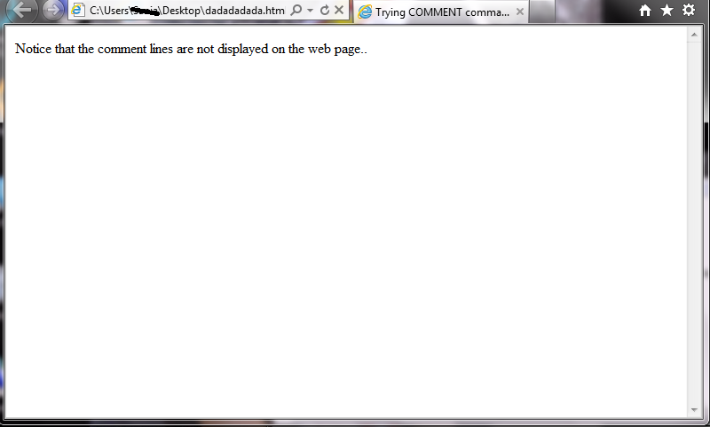 to create a comment. Let us considered an example. Type the following HTML code in notepad, save the document as an HTML file, and open it in a browser......